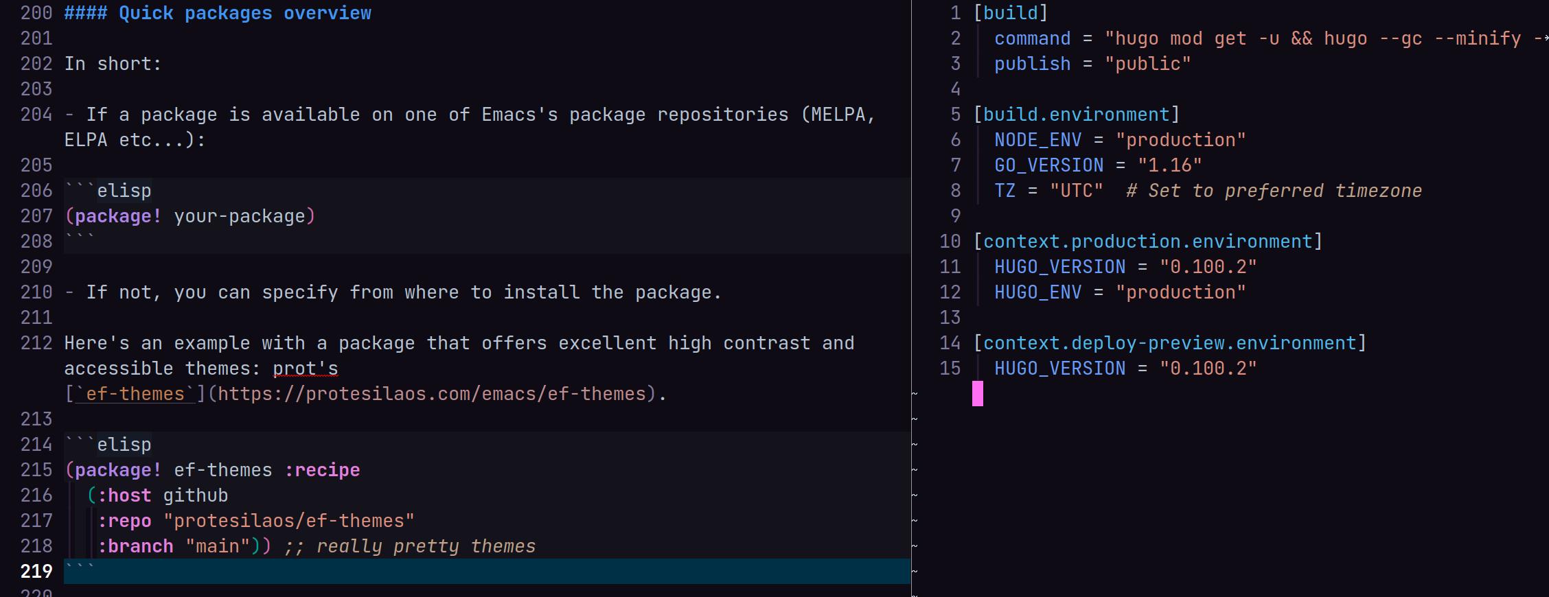 The built-in Emacs syntax highlighting for some languages can be lacking at times. Fortunately, thanks to Tree-sitter there’s a way to improve it.
